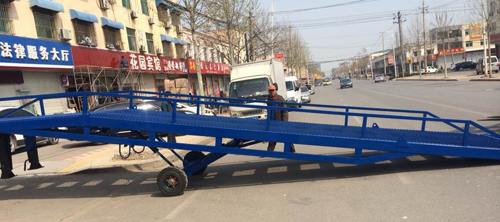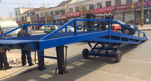 移動式登車橋與叉車配合使用的貨物裝卸輔助設(shè)備,可根據(jù)汽車車廂的高低調(diào)節(jié)高度,叉車可以直接通過本設(shè)備駛?cè)胲噹麅?nèi)部進(jìn)行貨物的批量裝卸,僅需單人作業(yè),即可實(shí)現(xiàn)貨物的快速裝卸。它使企業(yè)減少大量勞力,提高工作效率,獲取更大經(jīng)濟(jì)效益。